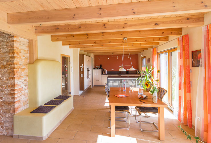 Hier wollten die glücklichen EIGENHEIM-Besitzer einfach zeigen und selbst spüren, dass sie sich für ein gesundes Holzhaus entschieden haben. Mit diesem sichtbaren Holzgebälk ist es für Naturliebhaber ein echtes Glücks-Gefühl, fast wie wenn man im Wald unterwegs wäre. Hier wurde das Ziel: