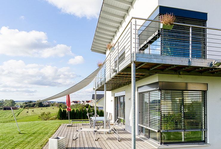 Die einfache Pultdach-Architektur in Verbindung mit den Glasflächen in Richtung unverbauter Aussichten stellen hier einen besonderen Charakter dar.